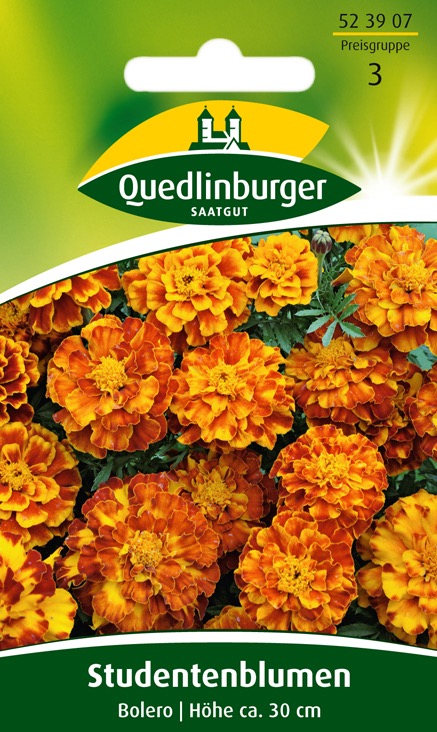 Einjährig. Dauerblüher mit buschig verzweigtem Wuchs und dicht gefüllten Blüten in einem Farbenspiel, das züngelnden Flammen ähnelt. Für Beete, Schalen und Kästen. Wuchshöhe ca. 30 cm.